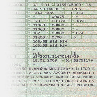 S'il n'y a qu'une vérification de résistance (comprend les propriétés mécaniques et la vérification de charge de la roue), ces demandes ne sont pas approuvées dans le domaine de la StVZO. Après le montage des pièces, une certification unique conformément à l'article § 21 StVZO doit être effectuée immédiatement par un organisme d'inspection officiellement reconnu. Ces organismes d'inspection incluent par exemple TÜV et DEKRA. Si la certification unique est positive, les inspecteurs délivrent un document correspondant, après quoi une correction immédiate dans les documents du véhicule par le bureau d'enregistrement est nécessaire. Nous recommandons de discuter des modifications avec l'inspecteur à l'avance.